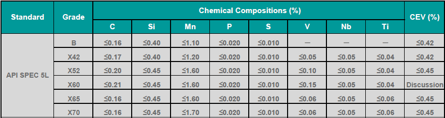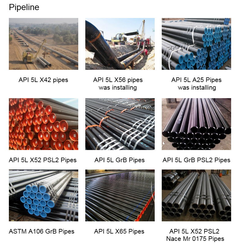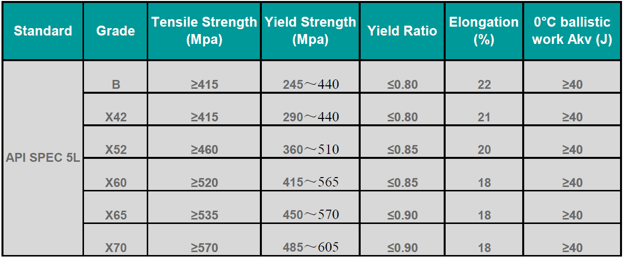 Main steel grades is for line pipe: grade B, X42, X52, X60, X65, X70, X80