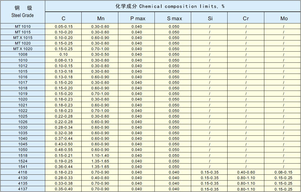 like SAE4140, 20MnV6,etc.