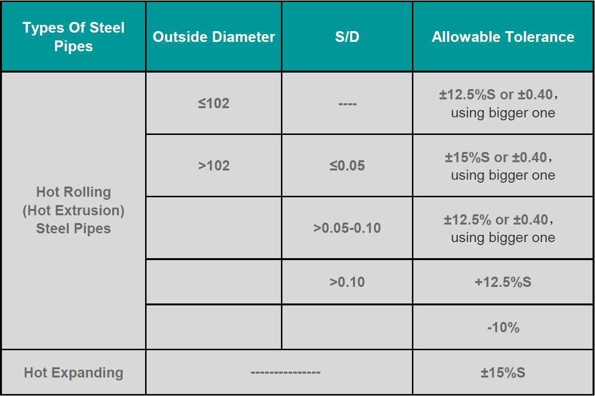 Hot rolling (hot expanding, hot extrusion) steel pipe: ±1% or ±0.50, using bigger one